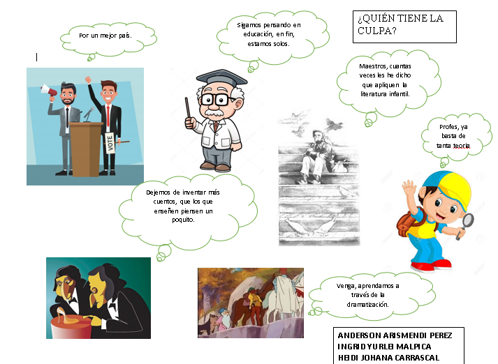 En el cuento de la educación en Colombia quisimos utilizar las vivencias del personaje Hans (Juan) con suerte, quien representa a todo niño y niña que da la impresión de recibir varias oportunidades de todos los que le quieren aportar, en especial las falsas promesas a los estudiantes, sin embargo lo que quieren es abusar de él, pero resulta que Hans es muy ágil y logra entender que al final lo que cuenta es aprender a recibir lo bueno , rechazar lo malo y tener tranquilidad sin pensadas cargas. (Cervera, 1996: 23).